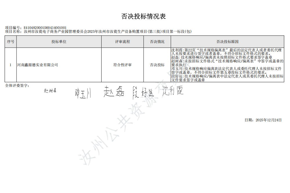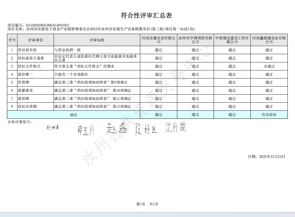 汝州市汝瓷电子商务产业园管理委员会2025年汝州市汝瓷生产设备购置项目(第三批)项目-中标公告